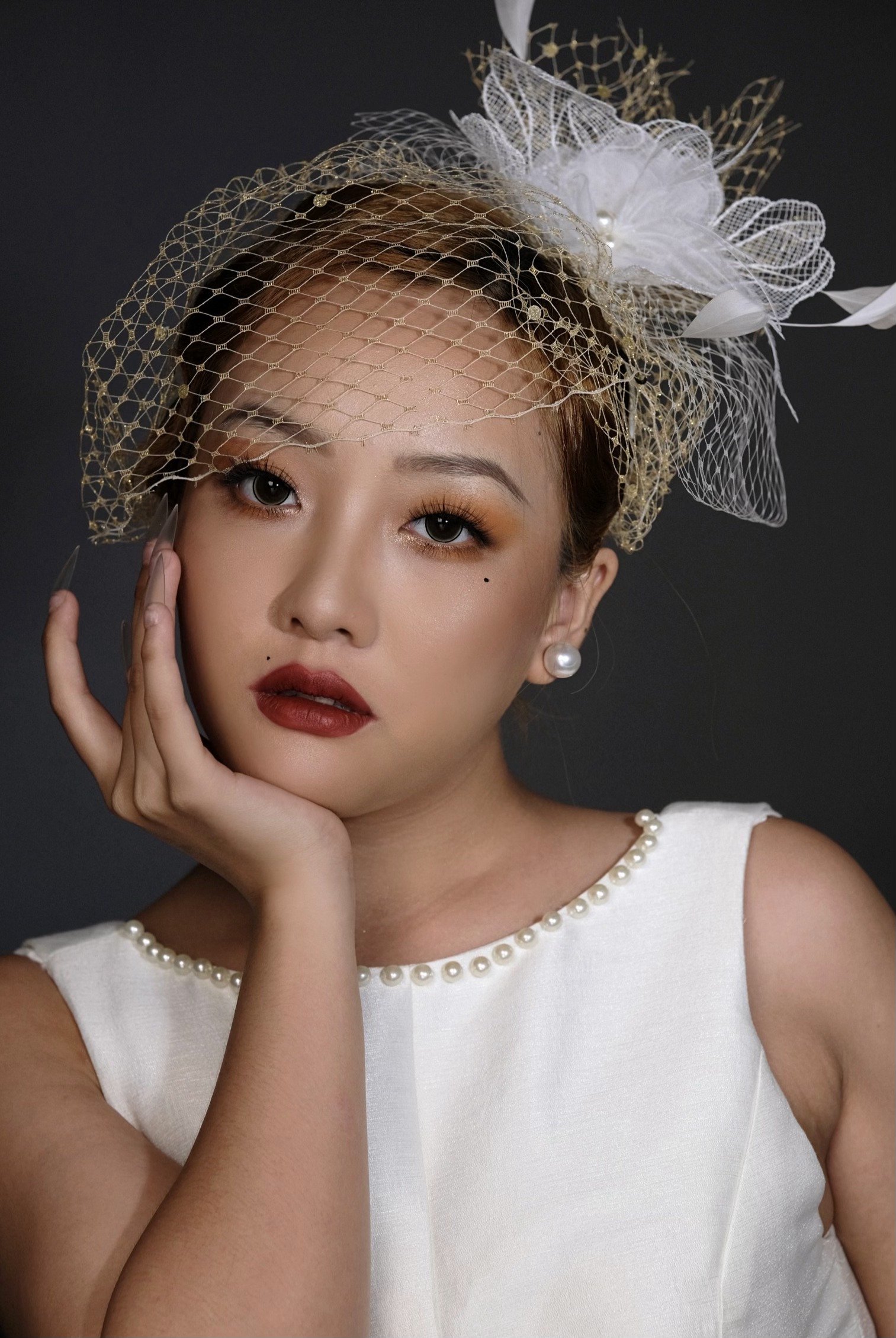 Son môi: Son 3CE màu cam đất và đánh kín toàn bộ môi giúp nổi bật hơn. Má hồng: Bảng má hồng Tarte - Blush Bliss Palette, phấn má cam kết hợp với khối đậm ở vùng chữ C tạo nét sắc sảo cho gương mặt Má hồng: Bảng má hồng Tarte - Blush Bliss Palette, phấn má cam kết hợp với khối đậm ở vùng chữ C tạo nét sắc sảo cho gương mặt Màu mắt: bảng mắt Colorpop Orange You Glade, đường eyeliner đen đậm tạo nét sắc sảo cho đôi mắt Chì kẻ mày: Bột vẽ mày Nongchat màu nâu sáng kết hợp dáng mày cong phong cách Châu  u. Highlight: Clio Prism Air vùng trán, sống mũi, gò má, nhân trung và cằm. Tạo khối: Too Cool For School, dùng màu nâu, tạo  cho phần hai bên trán, kĩ phần hốc mắt và đầu mũi, phần cánh mũi 2 bên, 2 bên xương hàm, 2 bên gò má góp phần rõ nét gương mặt. Tạo khối: Too Cool For School, dùng màu nâu, tạo  cho phần hai bên trán, kĩ phần hốc mắt và đầu mũi, phần cánh mũi 2 bên, 2 bên xương hàm, 2 bên gò má góp phần rõ nét gương mặt.