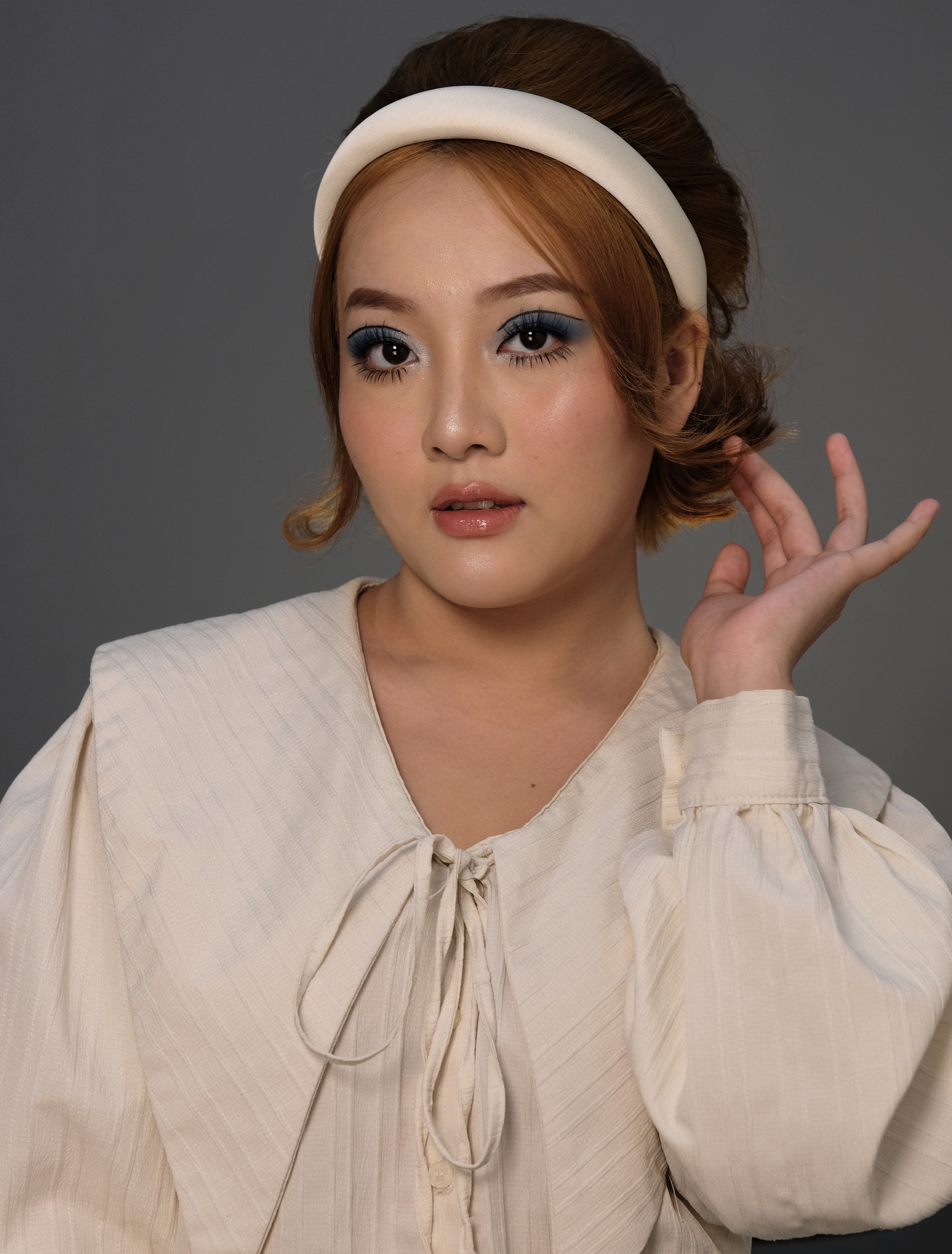 Tạo khối: Too Cool For School, dùng màu nâu, tạo  cho phần hai bên trán, kĩ phần hốc mắt và đầu mũi, phần cánh mũi 2 bên, 2 bên xương hàm, 2 bên gò má góp phần rõ nét gương mặt. Highlight: Clio Prism Air vùng trán, sống mũi, gò má, nhân trung và cằm. Chì kẻ mày: Bột vẽ mày Nongchat màu nâu sáng kết hợp dáng mày cong Màu mắt:dùng màu xanh trong bảng mắt Colorpop She Rainbow Palette.tạo điểm nhấn với đường cắt đen giữa hốc mắt, tập trung vào cả mi trên và mi dưới Má hồng: Bảng má hồng Anatasia Blush màu nâu cam nhẹ Son môi: Son 3CE màu nâu cam + son bóng Tạo khối: Too Cool For School, dùng màu nâu, tạo  cho phần hai bên trán, kĩ phần hốc mắt và đầu mũi, phần cánh mũi 2 bên, 2 bên xương hàm, 2 bên gò má góp phần rõ nét gương mặt. Chì kẻ mày: Bột vẽ mày Nongchat màu nâu sáng kết hợp dáng mày cong Má hồng: Bảng má hồng Anatasia Blush màu nâu cam nhẹ